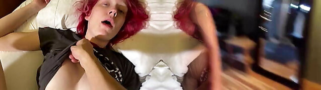 08:00This brunette bitch Emma Butt got extra immense fake tits; she is squeezing them and fingering her bald cunt.